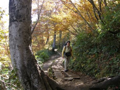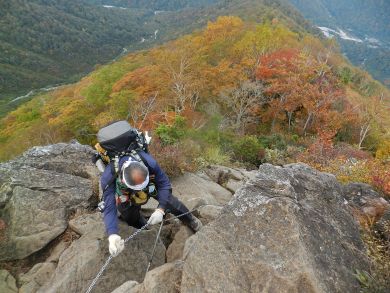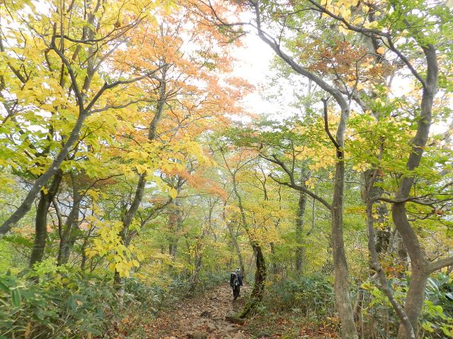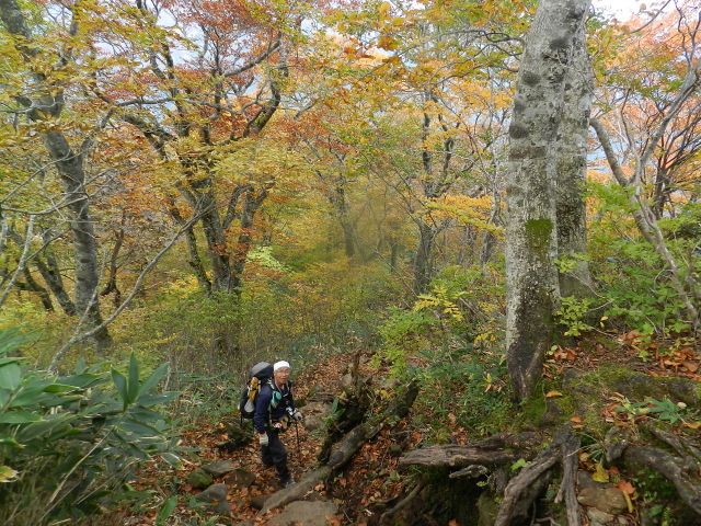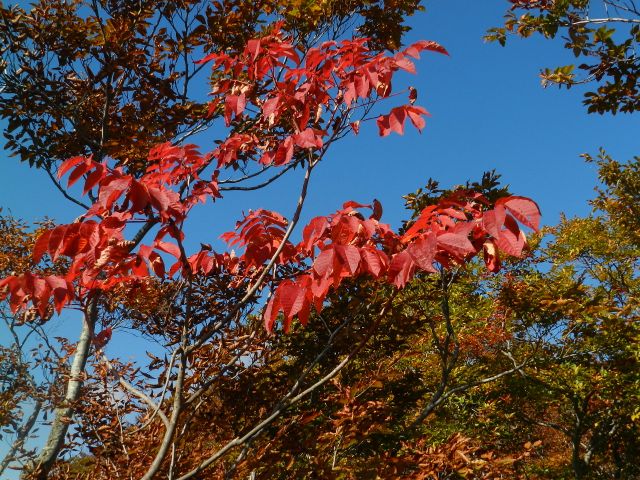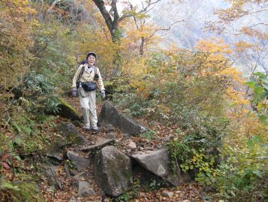 緊張する鎖場を通過して歩きやすくなると紅葉が一段ときれいになりました。 |