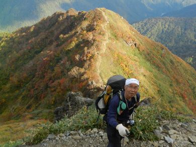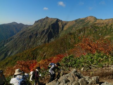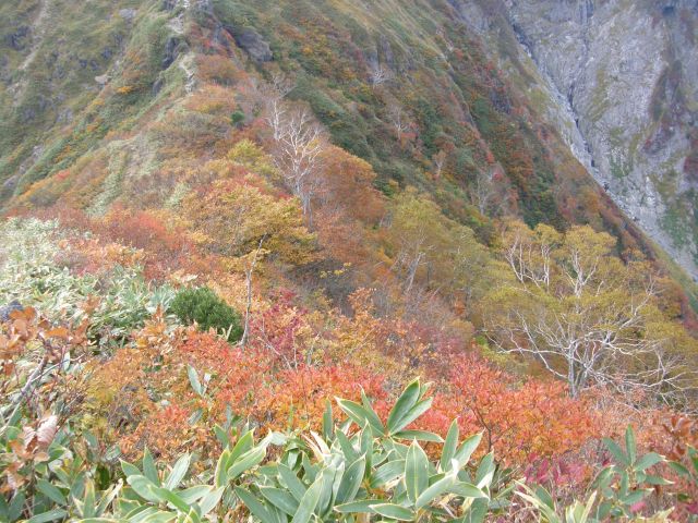 紅葉の美しさを目の当たりにして、とても感動したのを覚えています。 この日もまた西黒尾根を下ることにします。 |