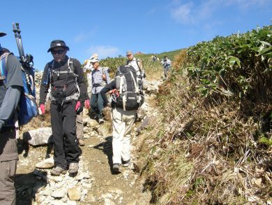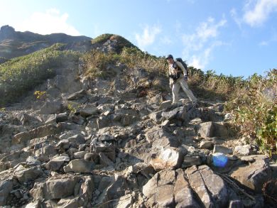急斜面と岩ゴロで下りは滑らないよう気を遣います。 12年前はデカザックでしたがもっとどんどん下りられた気がするなぁなんて思いながら、あの頃より年とっているのだから慎重に、慎重に・・・と^^; |