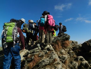 先ずはトマの耳。順番に写真を撮るのがせいいっぱい。落ち着かないままとにかく周囲の展望を撮っていたら、人ごみに紛れてトシちゃんの姿が見えなくなりました^^; くるくる見回してやっとオキの耳の方へ歩き出しているトシちゃんを発見。 登り始めからずっとこんな調子で、ちょっと写真を撮っている間に誰かしら間に人が入るものだから、感動を共有する余裕なんてありませんで・・^^; |