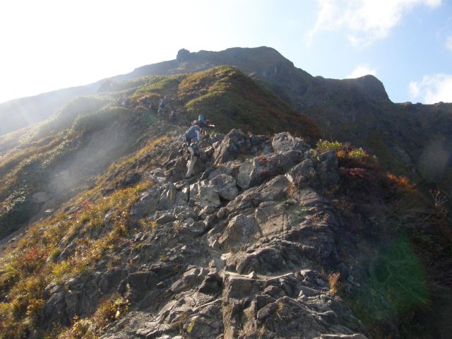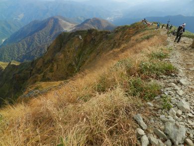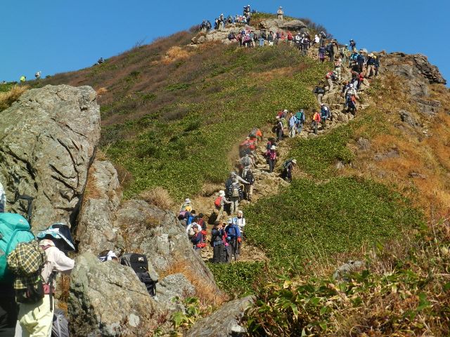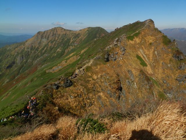 ラクダの背より谷川岳 まだまだ下りてくる人が続いています。 |
