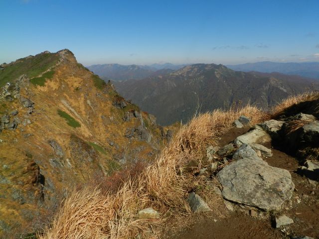 | 西黒尾根分岐へ 正面は群馬の山々 |