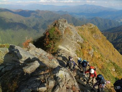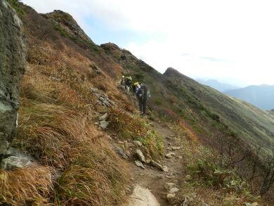 12年前、白毛門から馬蹄縦走をしてきたとき、 肩の小屋から西に延びるこの稜線を続けて歩く予定でした。 翌日の天候の崩れを避けて急きょ西黒尾根から下山したのでしたが それ以来まだここを歩いていません。 いつか歩く日が来るのかどうか・・・ |