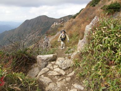 岩場でのすれ違い。 そういえば、谷川ではあまりに人が多すぎて、ほとんど挨拶を交わしていませんでした。立ち止まるほどの渋滞ではそれがマナーというものなのでしょう。 でも、こうした人が少ない場所でも?と意外に思った場面もありました。これって谷川ルール? そんな訳ないですね^^; |