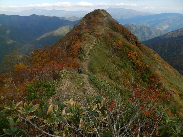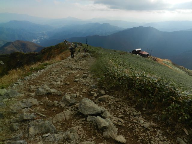 肩の小屋から伸びている尾根 |