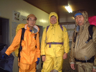 昨日下山したときには雪山丹沢を存分に堪能したし、宮本さんも私達も充分満喫していた。昨夜の時点でカッパ類はぐっしょりと濡れていたので、坂元隊長の意気込みをよそに、明日はもう温泉だ〜と言っていたのだ。もちろん、決行となれば当然行く(坂元さん、本当よ(^_-)V)。しかし大雨、大雪で中止となっても満足!満足!と思っていた。