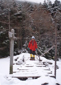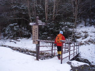 西尾根登山口。しゃくなげ橋を渡ります。 |
