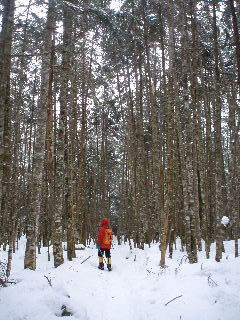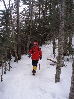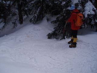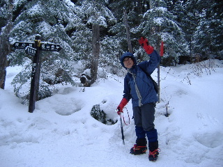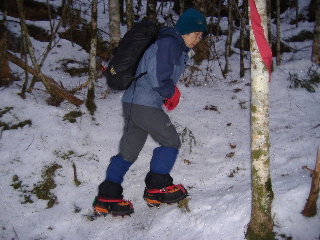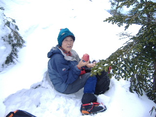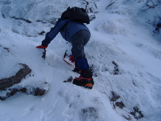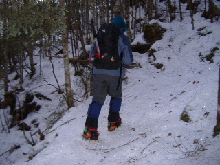 カズさんたちは西天狗直下くらいまでアイゼンは着けなかったそうですが、私たちは今回ザックに入れられませんし、路面の状態から判断して初めから履いていきます。まだ早いかと思いましたが、この早め装着は正解でした。 |