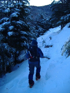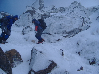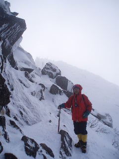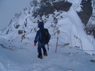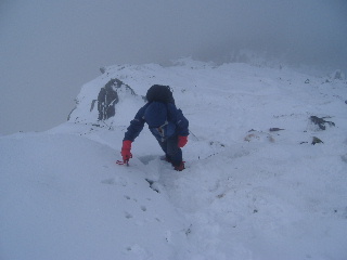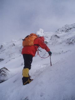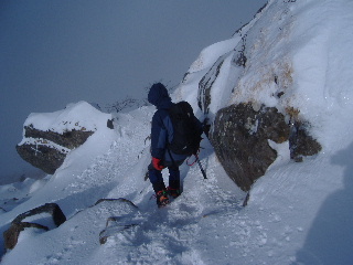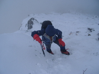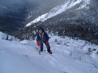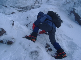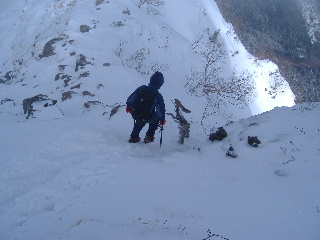 急斜面なのでアイゼンをきかせ、