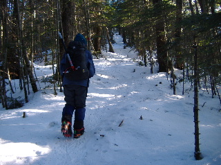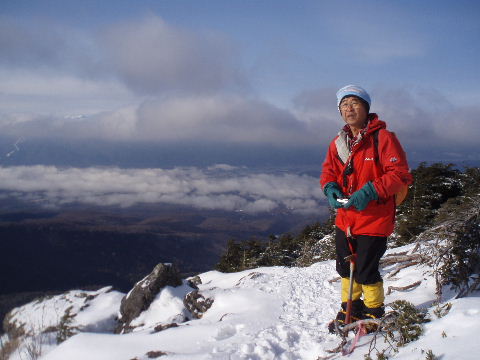 私たちが出発する前に単独男性が先に出発、アイゼンは未装着。展望の開けたところで追いつきましたが、途中で着けたようでした。 |