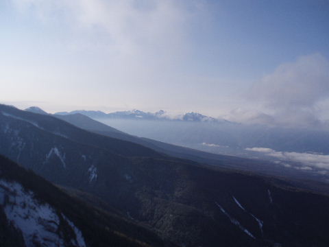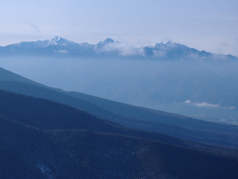 中央アルプスは残念ながら雲の中。