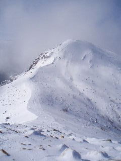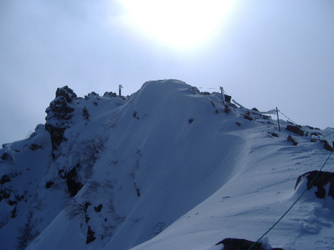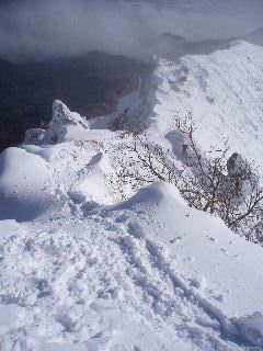 根石岳へ続く山頂直下のトレースですが