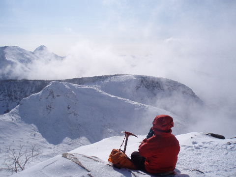 登った稜線を眺めながら。 |