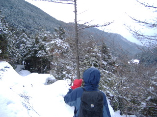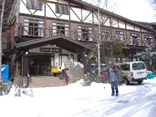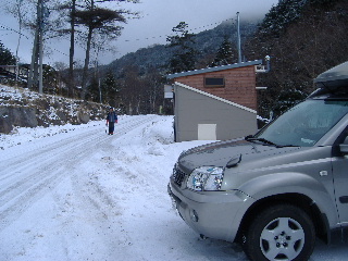 唐沢鉱泉も入れるのかもしれませんが、このあと再び縄文の湯へ。ところがそこへたどり着くまでが大変でした。三井の森の立派な舗装道を通りますが、路面がほぼ凍結状態。四駆のスタッドレスといえどもとても普通に走れません。山のコースは気に入りましたが、何が一番怖いって、この道路の下りが一番怖かった!ゆっくり走っても加速のつく下り坂、きついカーブは緊張します。ABSも効かないとかで、トシちゃん、しきりとホッピングブレーキしながらの運転でした。私には到底無理です(^^ゞ とにかく無事で良かった!運転お疲れ様でした。