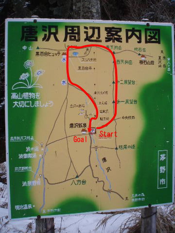 渋の湯分岐。ここから唐沢鉱泉へ。