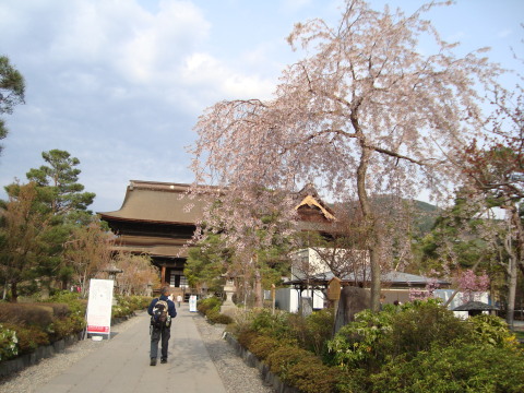 | 耳慣れない名前の独鈷山ですが、展望が良くお花も咲く山だとトシちゃん情報です^_^; 善光寺にまだ行ったことがなかったので、先に空いていそうな朝方善光寺参りをしてから独鈷山に行くことにしました。麓の桜が満開で見事でした。(記録は独鈷山を先に、善光寺を後にします) | ||
