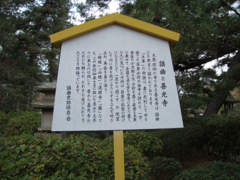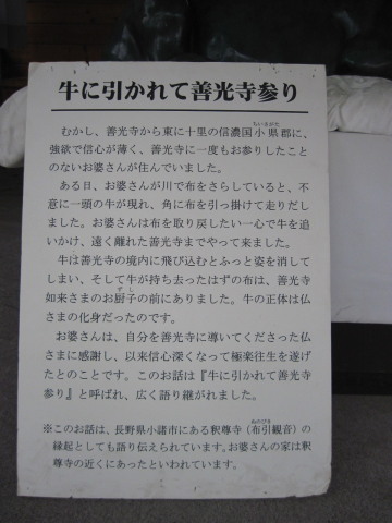 | 有名なフレーズ 「牛に引かれて善光寺参り」 観光案内所内で ![]() |