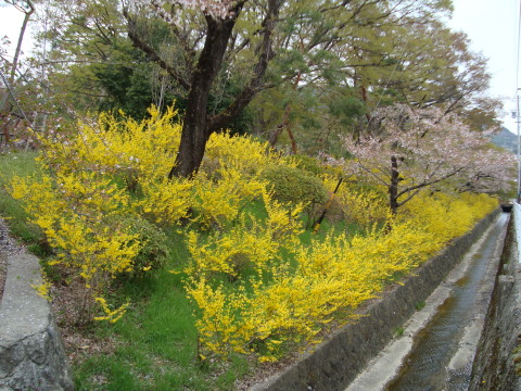 | 境内の外に出るとレンギョウが満開。 ![]() |