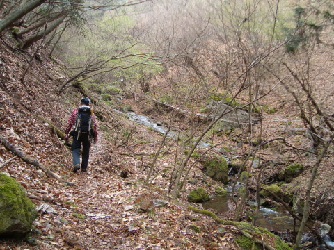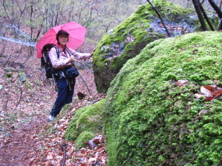 | で、雨の時の渡渉は気を遣います。渡渉は3回くらいだったでしょうか。雨でなければ問題ないと思います。 渡渉は下りる時の目安にするため登りでチェックしながら行きますが、数が多いと覚えきれません^_^; |