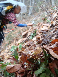 | 幸い雨が止み、山野草を楽しみながらゆっくり登っていきます。・・・が、このあとも降ったりやんだり。 | 【ムラサキケマン】![]() |