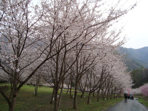 ![]() ↑ 麓の桜、中央奥に独鈷山 |