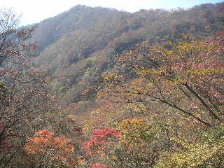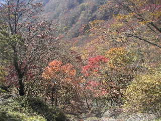 後沢乗越から二俣へと向かい、沢まで下りて見上げると山肌が紅葉している。もう一度来てみたいな〜と思いながら、登りのときとは打って変わった急ぎ足で大倉までもどった。