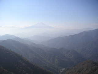 山頂ではのんびりと長いこと展望を楽しんでいた。北岳など南アルプスや八ヶ岳もかすかに見える。このまましばらく山頂展望を楽しんで同ルートを下山しようかと思っていたが、鍋割から登ってきたという単独の女性と話している内に気が変わった。時間を見ると14時近い。タイムリミットぎりぎりだがやはり鍋割山に廻っていこう。この稜線をやはり歩いていきたい。