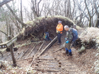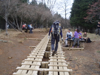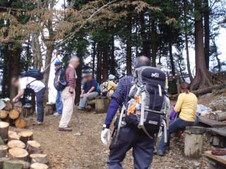 | 塔ノ岳山頂。 皆寒そうに休憩中。 |