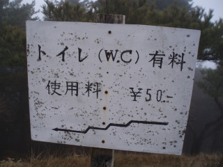 山荘のトイレ使用料は50円。 | |||