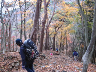 | もう日が短いですから、足元に気をつけて急いでおります。 途中小さなお子さんを連れたグループがいましたが、明るいうちに下山できたのかな?ヘッドランプは持っていたのかな?と後からちょっと心配になりました。 |