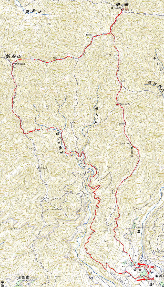 | 丹沢:塔ノ岳〜鍋割山 (とうのだけ1490.9クリック地図〜なべわりやま1272.5mクリック地図 ) |