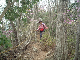 ひたすら登りの途中には、安全と植物保護の目的らしく、トラロープが随所に張られていた。 4年前に来た時より入山者が増えているようで、かなり整備されていた。 |