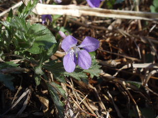 | 登りはじめて足元にはタチツボスミレ。カタクリもありましたが既に終わり。 | |
