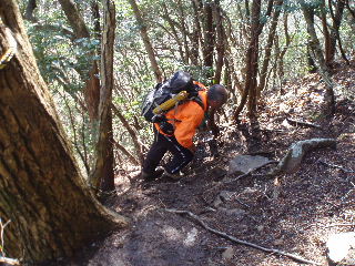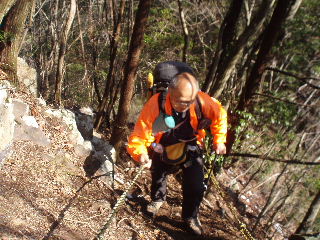 | けっこう急登ですが、トラロープに助けられ。 | |