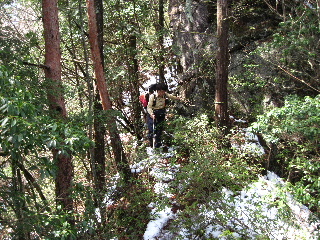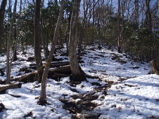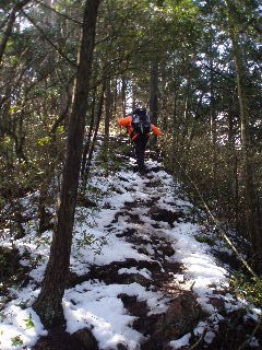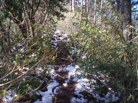 | 一方登山道は雪解けで大変でした。 | |