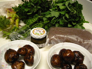 で、今夜の我が家のメニューは山の幸。 トシちゃんの好きな動物性たんぱく質がありませんが ボリューム満点。しかもヘルシー♪ |