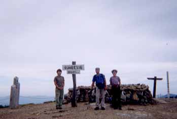 再び小屋を経て展望台の方に夫と娘の休んでいる姿が見えた。合流して私も一緒にひと休みした後一ノ森へ。こちらは樹木の名前が分かり易く書いてある。次郎笈に行くよりいささか小さなアップダウンがあったがこちらもアッという間に山頂に着く。やや低い一ノ森からは剣山や次郎笈が大きく見える。一段下に一ノ森ヒュッテがあった。山頂には丁度小屋の管理人さんがいらして、山頂からの展望の様子を話して下さった。その時は生憎ガスで展望が遮られてしまったが、朝は遠く紀伊半島や伊吹山も見えたという。桂浜方面も石鎚山も見えるそうだ。