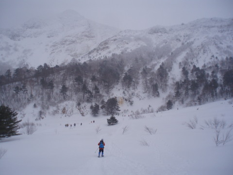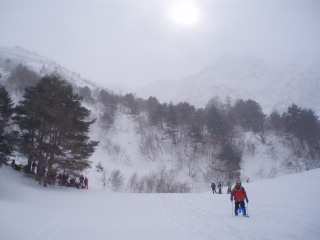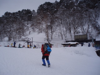 | 後ろにも前方にも人がチラホラ。雪はチラチラ・・ | ![]() |