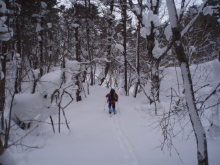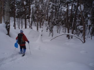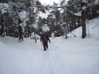 | やはり快適。トレースがあるところも無いところもタッタカ歩けます。 コースはなるべく外さないようにして、人がいないところ、トレースのないところを楽しみます。 |