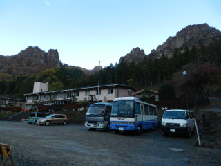 国民宿舎裏妙義。ここで一泊してのんびり紅葉を見たいねなんて、昨年話していたのですが、今回も日帰りです(^^ゞ あの丁須の頭とか歩くことはないだろうな・・・ |