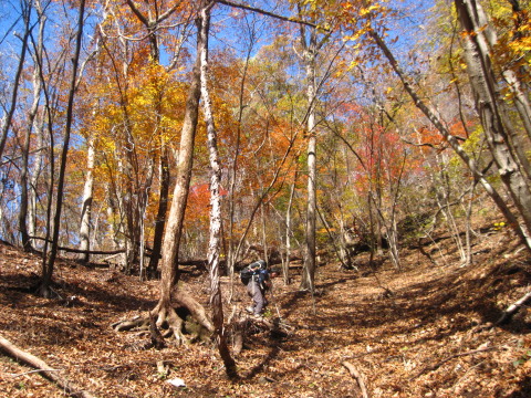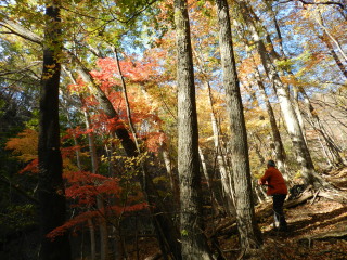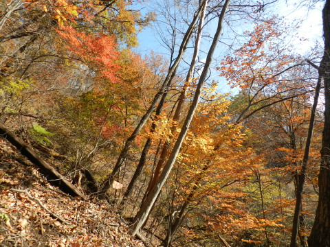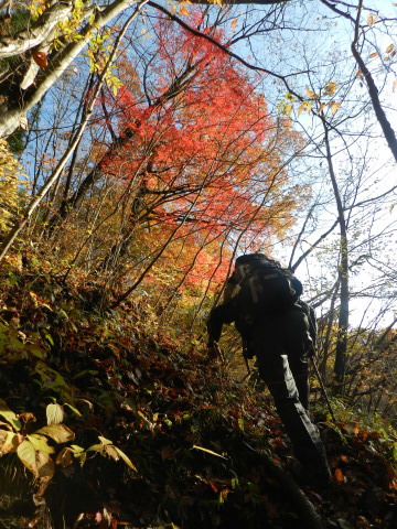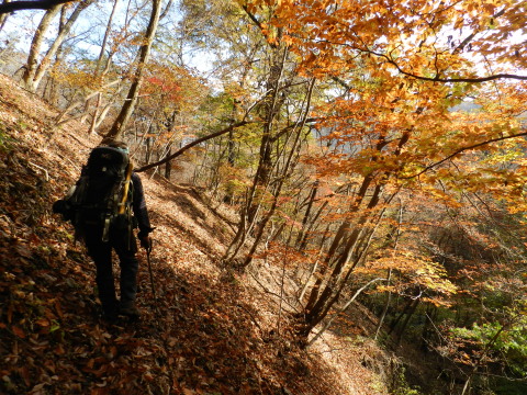 | 雨予報の週末、日曜は晴れるらしい!ということで行き先は前夜決定。昨年は谷急山までのピストンでしたが今回は紅葉が見事だった辺りまで。いろいろハプニングがありましたが紅葉は楽しめました。落葉した木があった半面、これから色づく木もけっこうありましたのでもうしばらく楽しめそうです。 |