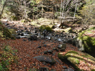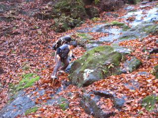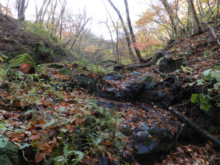 谷急沢に出て、地図ではこの辺りからちょっと分かりにくいらしいですが、マークめがけて沢を渡り左岸へ。 |