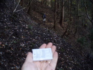 見た目より急斜面でした。 一休みして現在地とルートを確認。 |