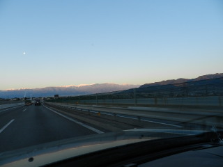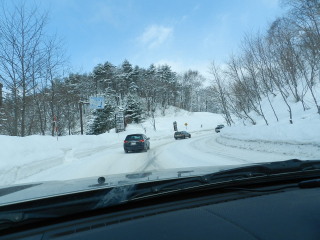 岡谷JCTから長野道に入ると雪が舞ってきました。電光掲示板には50キロ制限の表示ですが、路上に雪は無く、皆さん通常の速度走行です。 渋滞してきたと思ったら案の定タイヤチェック。豊科インター出口分岐でチェックされその後はまた順調に走っていきます。ここでノーマルタイヤはチェーンをつけることになりますが、この後も積雪はありません。スタッドレスで良かった、というか、雪国に行くには必須です。チェーンをつけた車、切れてしまうよ・・と要らぬ心配をしてしまいました(@_@;) |