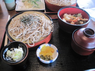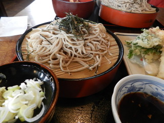 | * * * * * * * * * * 信州と言えばやはり蕎麦を食べなきゃ! 左トシちゃん、ざる天丼セット。右sanae、天ざるそば。 コシがあって美味しかったです。 |
