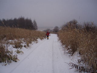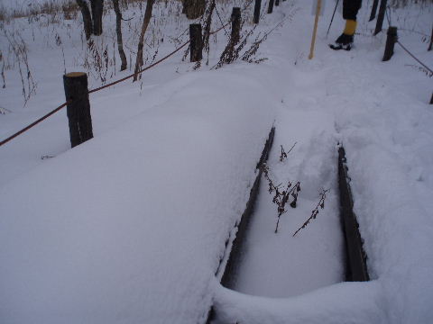 | まだ湿原一面の雪ではありませんでした。真っ白だときれいですが、積雪しても湿原の中は入ってはいけないことになっています。 | ||||