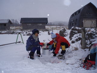 | 6時到着ですが、天気も良くないので初めから少し眠るつもりでした。3,4時間寝て起床。雪が降り続いていましたが、朝食と着替えを済ませて八島湿原へ向かいます。 | ||||