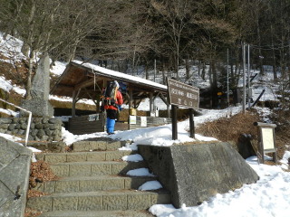 | H24年1月28日(土) 天気;晴れ Member.2人(トシちゃん、sanae) 【コ ー ス】(〜は歩、休憩時間含む) 登山口9:57〜夜叉神峠11:30-13:50〜登山口14:30 |