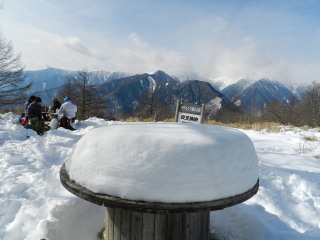 山頂には2時間半近くいました。 気温は1.5℃前後。ジッとしていると寒いですが、陽射しが温かくも感じられました。 |