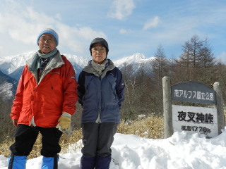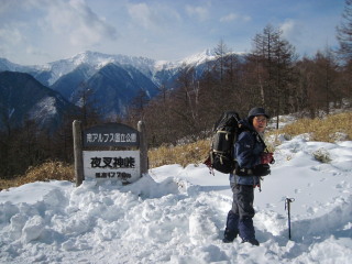 | 天候もさることながら、家事と誕生して二ヶ月近い双子の孫の育児補助で体力消耗の日々の中、やっと出かけてきました。急きょ前夜決めたためバタバタと準備、当日朝の出発。短時間の雪道歩きと展望を求め初日は夜叉神峠、翌日は守屋山へ。それでも体力的にきつかったのですが行けば気分爽快、嬉しい山歩きでした。 |